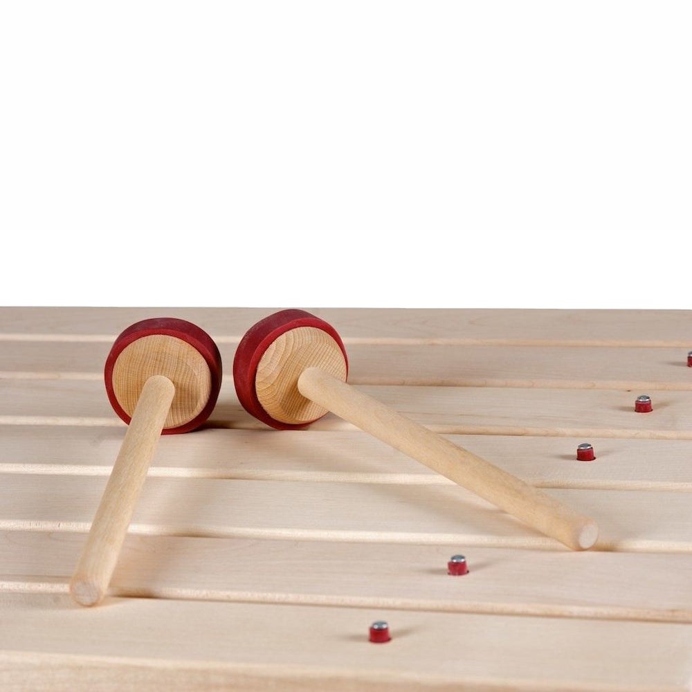 Maple wood plates, pine wood frame, 7 tones, diatonic, 2 mallets, range: d-e-g-a-h-d’-e’