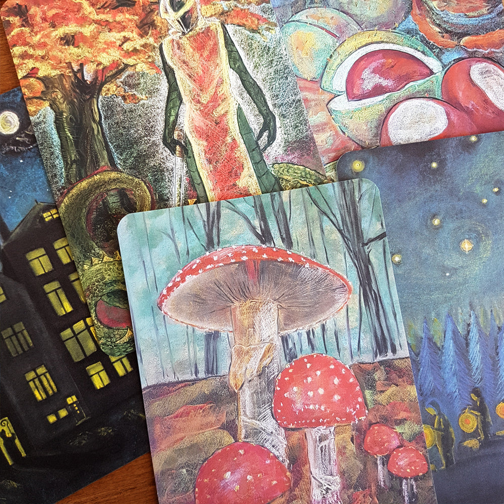 Geertje Kapteijns (1980) is a visual artist, living in Dordrecht, Netherlands. When her children went to a Waldorf school, she was introduced to the way in which the seasons and annual festivals are celebrated and how children are able to be children during childhood. This has proved to be a huge source of inspiration. She started making chalkboard drawings and over time, she released them as cards, as well as her watercolour paintings as cards. The cards are small works of art that encourage a conscious reflection on a certain time of the year or a certain event and the feeling that goes with that. Drawings that make you look forward to remembering a beautiful moment.