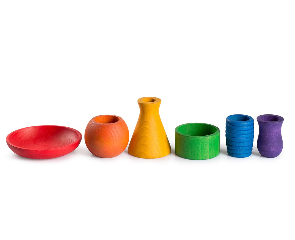 This set contains 6 pots in different colours, sizes, volumes and shapes.  They're perfect for nurturing sensory development.  Can be combined for creative play possibilities with the Grapat tools (sold separately).