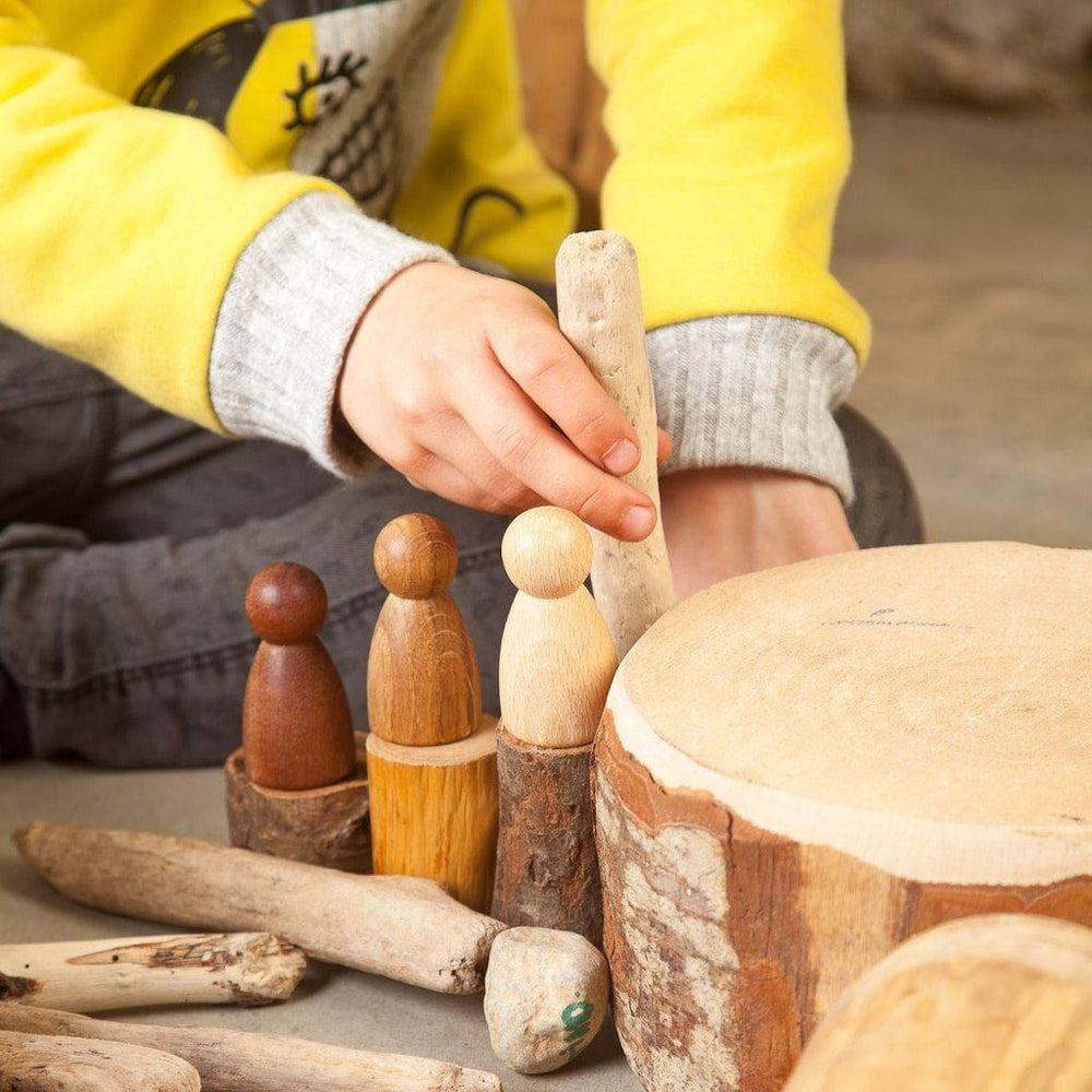 Wood is our element. It is warm and alive; it is soft and robust at the same time. Its irregular shapes and incomplete patterns make it unique and truly beautiful to our eyes. Its texture holds a wealth of information and hidden stories waiting to be discovered by the senses of every child. Over time, the wood will acquire subtle dents and scars, and this means that it has accomplished its very aim, providing children with hours and hours of free and open-ended play, and we deeply cherish that. The “imperfectness” of the wood makes each piece unique – just like us humans! Our toys are produced according to traditional manufacturing processes and with proximity sustainable materials sourced within the EU.