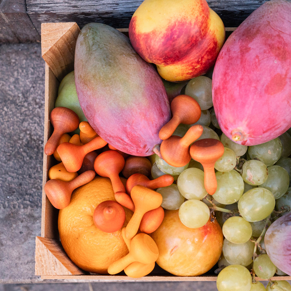 Wood is our element. It is warm and alive; it is soft and robust at the same time. Its irregular shapes and incomplete patterns make it unique and truly beautiful to our eyes. Its texture holds a wealth of information and hidden stories waiting to be discovered by the senses of every child. Over time, the wood will acquire subtle dents and scars, and this means that it has accomplished its very aim, providing children with hours and hours of free and open-ended play, and we deeply cherish that. The “imperfectness” of the wood makes each piece unique – just like us humans! Our toys are produced according to traditional manufacturing processes and with proximity sustainable materials sourced within the EU.