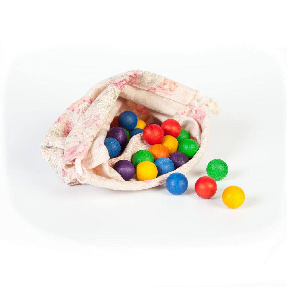 Set contains 36 wooden marbles in the colours of the rainbow.