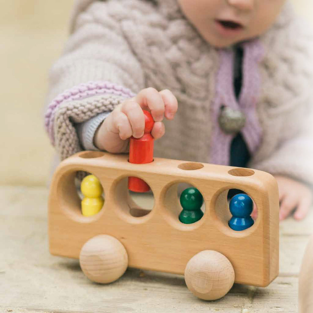 These simple and robust vehicles from the "Konrad Keller Collection" from Ostheimer are made of solid beech wood. With colourful people, they are great fun for little racing drivers, pilots and bus drivers.