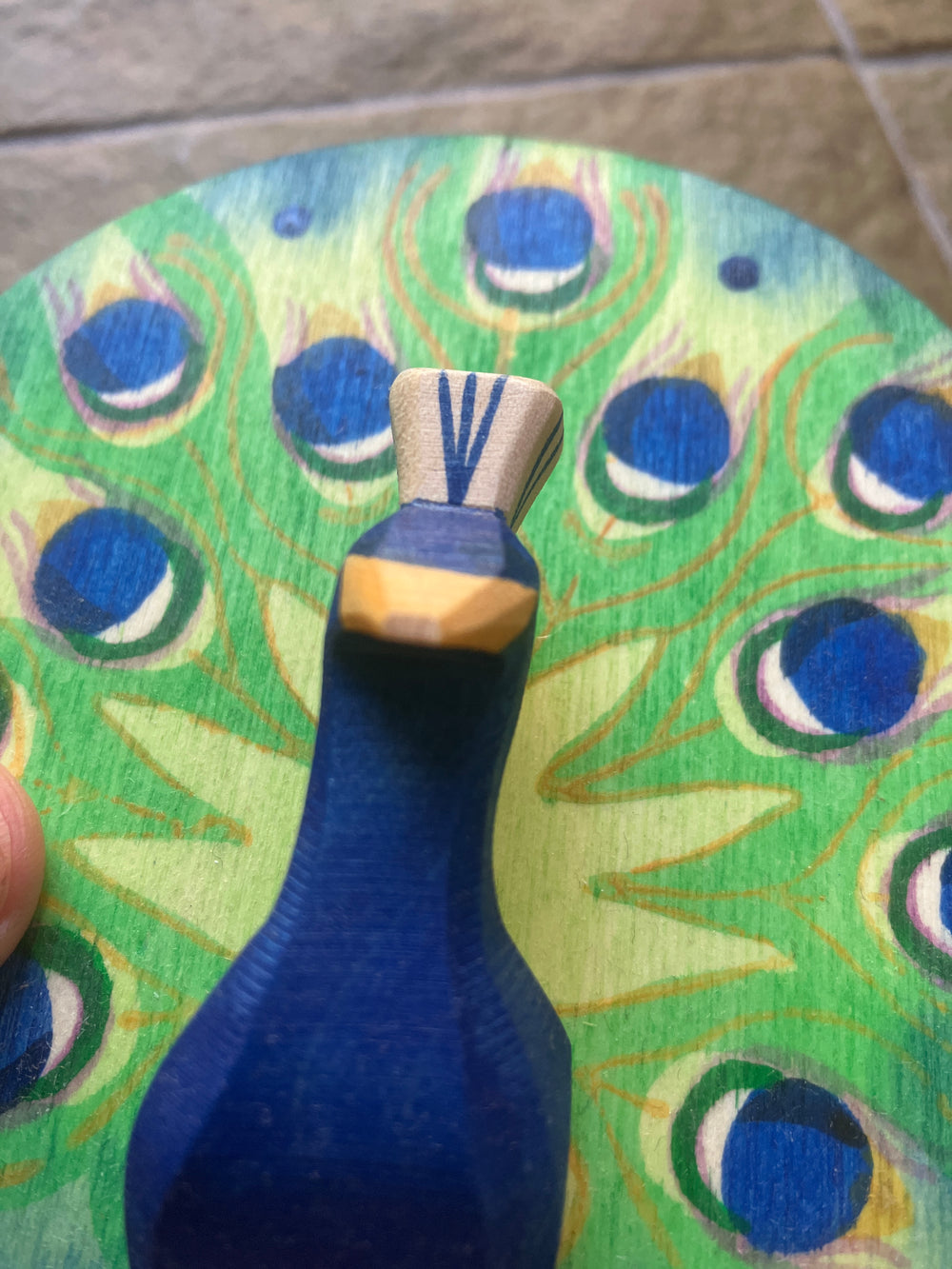 Ostheimer figures are made entirely by hand in Germany. The high quality of environmentally-friendly Ostheimer wooden toys is based on the use of certified materials. The warm, natural material of wood comes from sustainable domestic forestry and certified organic wood, and the selected childsafe colors and organic oils preserve the natural characteristics of the wood and make it tangible for the child. Many senses are thus involved: the grains of the surface of the wood, the smell of high-quality oils, the beautiful sight for the eye. Artistic and practical designing and painting have a focus so that the characteristic peculiarities of an animal's very typical appearance, in short its spirit, are expressed in it. This is so achieved, not in merely the naturalistic depiction that each outer detail creates, but rather the shapes and painting are deliberately limited to essentials; something special from the character and gesture of an animal or a human figure. The child is not getting something finished in the hand, not a detailed snapshot of a trotting horse with defined eyelashes and facial expression - rather, an Ostheimer wooden figure leaves the child completely immersed in the exciting world of "horse" and gives their imagination much space for play, again and again new scenes and situations to make: as the horse is galloping, standing, neighing, nestling their head against me or it lies down to rest. The design of Ostheimer figures can behave in typical fashion in their movement, as they can look at any moment quite different. All that is in the restrained design of the wooden figure in it, and the child can bring it out, imaginative play coming to life.
