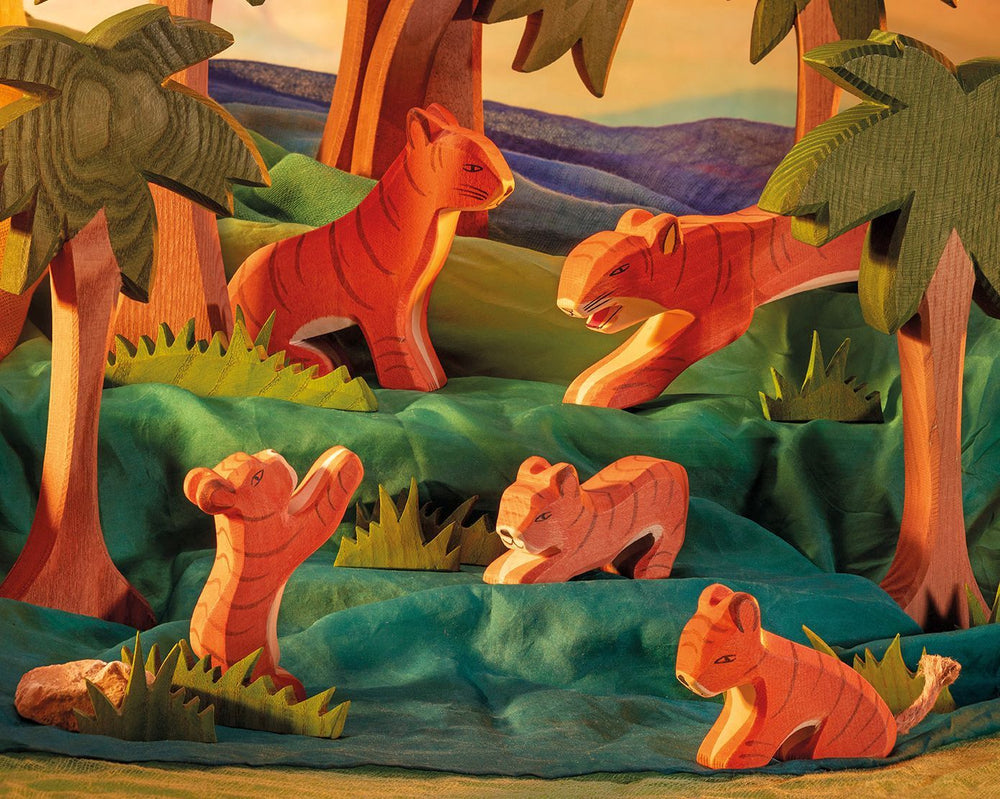 Ostheimer figures are made entirely by hand in Germany. The high quality of environmentally-friendly Ostheimer wooden toys is based on the use of certified materials. The warm, natural material of wood comes from sustainable domestic forestry and certified organic wood, and the selected childsafe colors and organic oils preserve the natural characteristics of the wood and make it tangible for the child. Many senses are thus involved: the grains of the surface of the wood, the smell of high-quality oils, the beautiful sight for the eye. Artistic and practical designing and painting have a focus so that the characteristic peculiarities of an animal's very typical appearance, in short its spirit, are expressed in it. This is so achieved, not in merely the naturalistic depiction that each outer detail creates, but rather the shapes and painting are deliberately limited to essentials; something special from the character and gesture of an animal or a human figure. The child is not getting something finished in the hand, not a detailed snapshot of a trotting horse with defined eyelashes and facial expression - rather, an Ostheimer wooden figure leaves the child completely immersed in the exciting world of "horse" and gives their imagination much space for play, again and again new scenes and situations to make: as the horse is galloping, standing, neighing, nestling their head against me or it lies down to rest. The design of Ostheimer figures can behave in typical fashion in their movement, as they can look at any moment quite different. All that is in the restrained design of the wooden figure in it, and the child can bring it out, imaginative play coming to life.