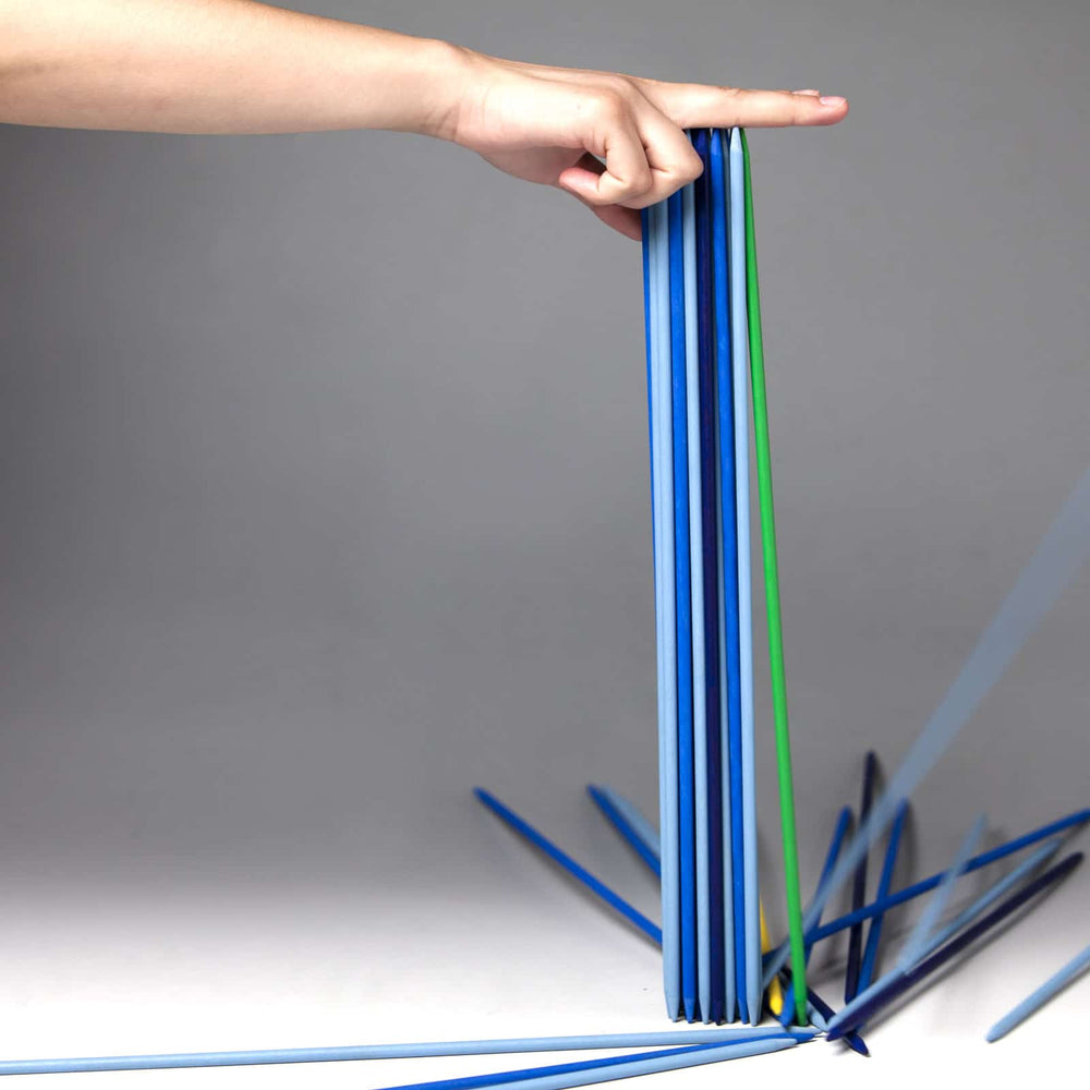 Let the sticks fall randomly onto the table. The first player removes a stick by hand or using another stick, but without moving any others. If a stick moves, the next player goes.
