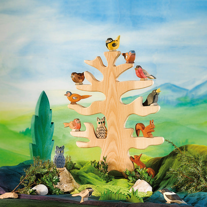 Margarete Ostheimer had originally captured the bird world in three birds of paradise, which served as colorful archetypes. When Stephan Zech took over the design, he soon decided to add several birds native to Central Europe to the Ostheimer collection. Not only because these birds are dear and familiar to him, but also because he thought it was important that children develop a relationship to these small, delicate, so enriching inhabitants of nature. In his designs, he captured the most important characteristics of each bird to make them recognizable and reflect their character.