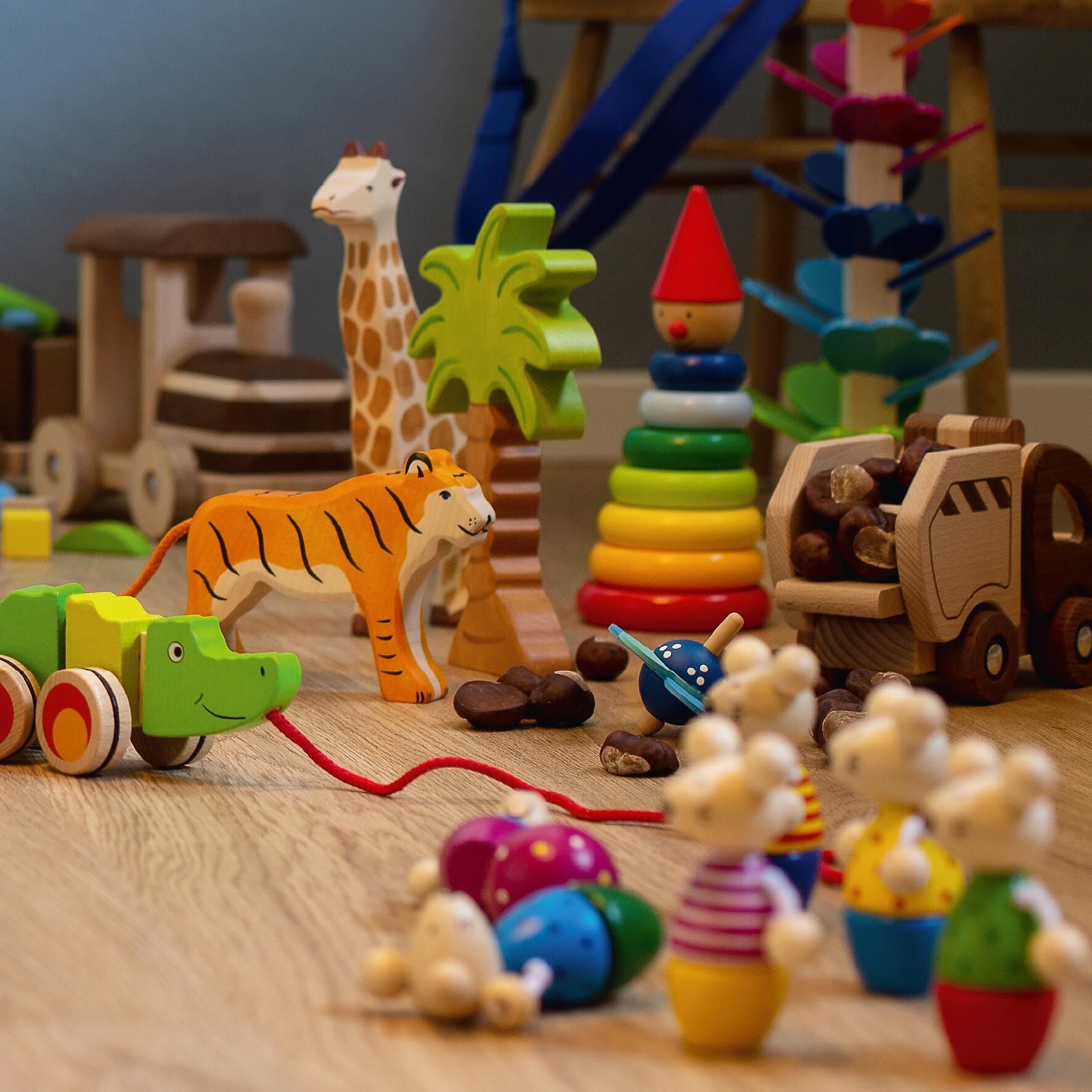 We use wood from sustainable, European forestry. Beech, maple or spruce trees stand in the forest for more than 80 years before they are felled in the spirit of sustainable forestry. A whole human life must pass, only then do we want to and are we allowed to use the woods. It is our obligation and responsibility to produce the best possible wooden toys from them. It is out of this intention that we have persistently developed over the past 40 years.