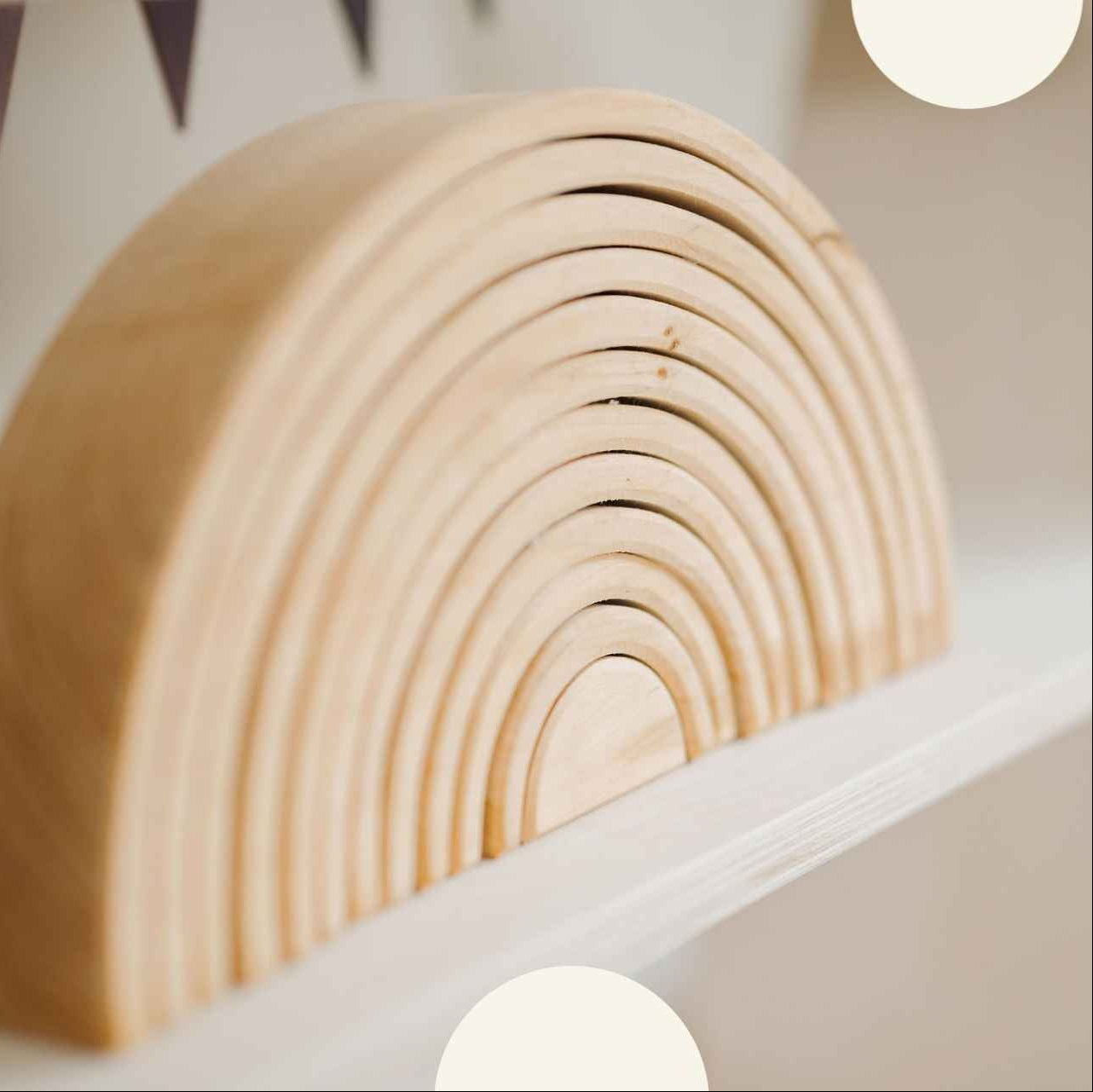 The large natural Rainbow is really versatile and ideal already for small children! Toddlers stack, sort and build and as the children get older they might use it as a cradle for dolls, as fence for animals, like a tunnel or bridge for vehicles, as house for dwarfs and dollhouse dolls, build amazing sculptures... this rainbow will always be integrated in playing with a lot of fantasy. This product is recommended by "spiel gut" (good toy guide).
