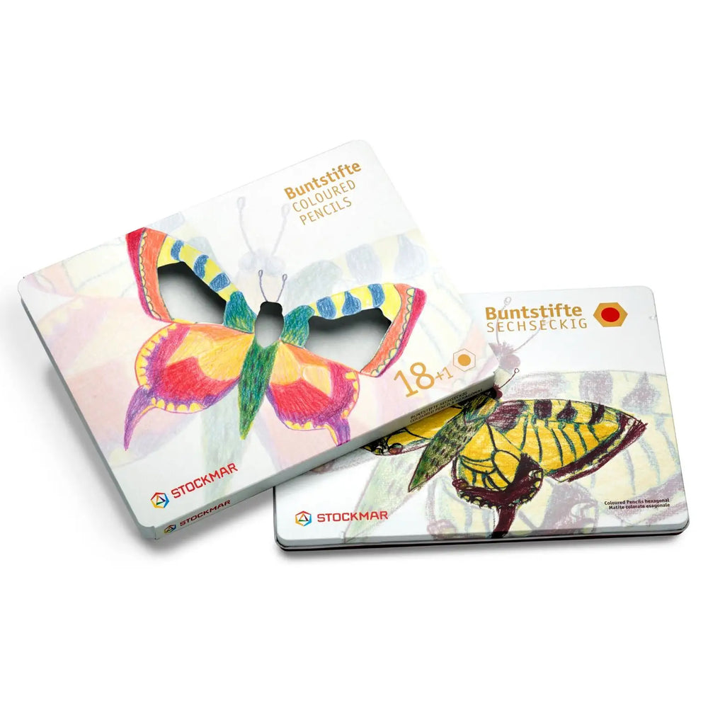 Stockmar 18+1 coloured hexagonal pencils in a tin