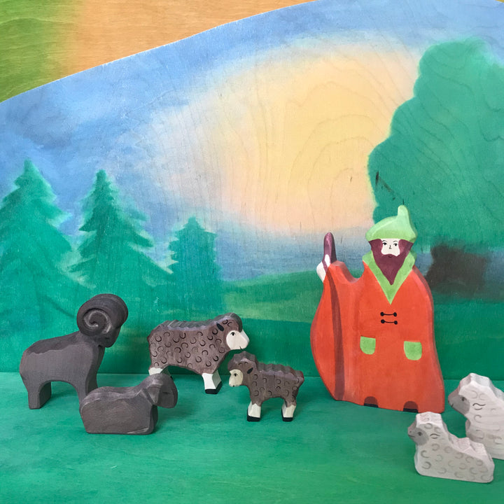 All the figures are made from local maple and beech wood. Each figure is sanded by hand and painted with non-toxic water-based paints, ensuring that the fine natural structure of the wood is visibly preserved and giving the toys their unmistakable character.