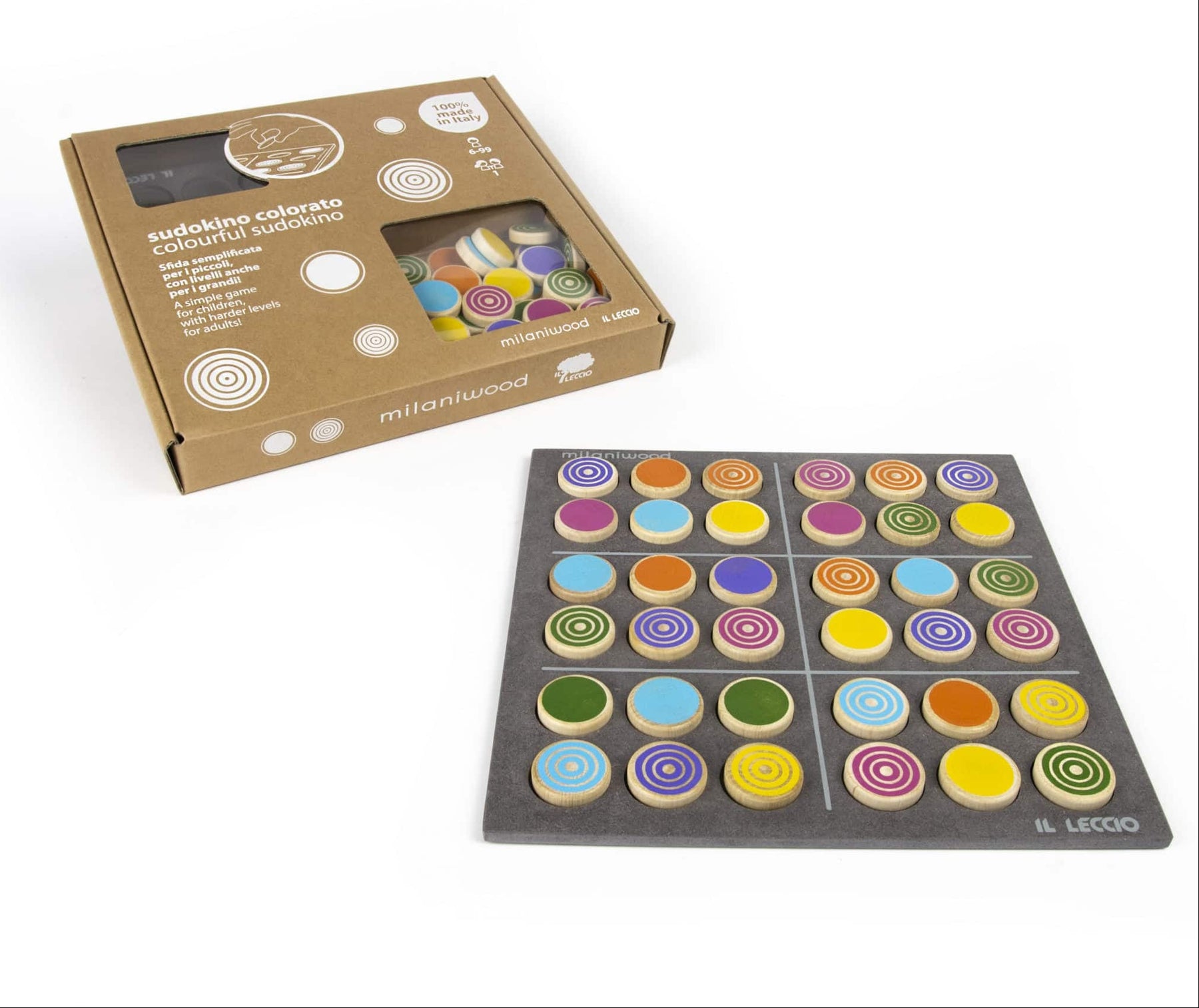 Milaniwood is a brand of exclusively designed ecological wooden games that are 100% manufactured in Italy by T.a.m.i.l., a company that has been making high quality wooden components since 1924. The games are made with FSC wood using machinery fuelled by clean energy, safe, with attention to detail and recyclable packaging made of cotton and cardboard.