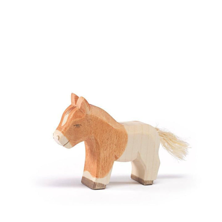 Ostheimer figures are made entirely by hand in Germany. The high quality of environmentally-friendly Ostheimer wooden toys is based on the use of certified materials. The warm, natural material of wood comes from sustainable domestic forestry and certified organic wood, and the selected childsafe colors and organic oils preserve the natural characteristics of the wood and make it tangible for the child. Many senses are thus involved: the grains of the surface of the wood, the smell of high-quality oils, the beautiful sight for the eye. Artistic and practical designing and painting have a focus so that the characteristic peculiarities of an animal's very typical appearance, in short its spirit, are expressed in it. This is so achieved, not in merely the naturalistic depiction that each outer detail creates, but rather the shapes and painting are deliberately limited to essentials; something special from the character and gesture of an animal or a human figure. The child is not getting something finished in the hand, not a detailed snapshot of a trotting horse with defined eyelashes and facial expression - rather, an Ostheimer wooden figure leaves the child completely immersed in the exciting world of "horse" and gives their imagination much space for play, again and again new scenes and situations to make: as the horse is galloping, standing, neighing, nestling their head against me or it lies down to rest. The design of Ostheimer figures can behave in typical fashion in their movement, as they can look at any moment quite different. All that is in the restrained design of the wooden figure in it, and the child can bring it out, imaginative play coming to life.