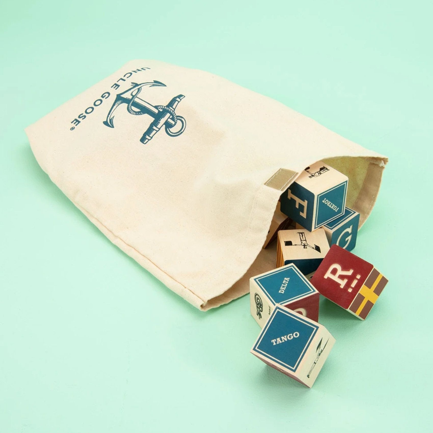 Displayed on a mantle or coffee table, Nautical ABC Blocks by Uncle Goose can enhance a nautical theme in any room. As they grace your beach home, guests will be tempted to spell out their names in flags or in Morse code. Let them - these blocks may be decorative, but they're also fun to touch and stack. The matching canvas storage bag features a big blue anchor - but will you ever store these blocks away?