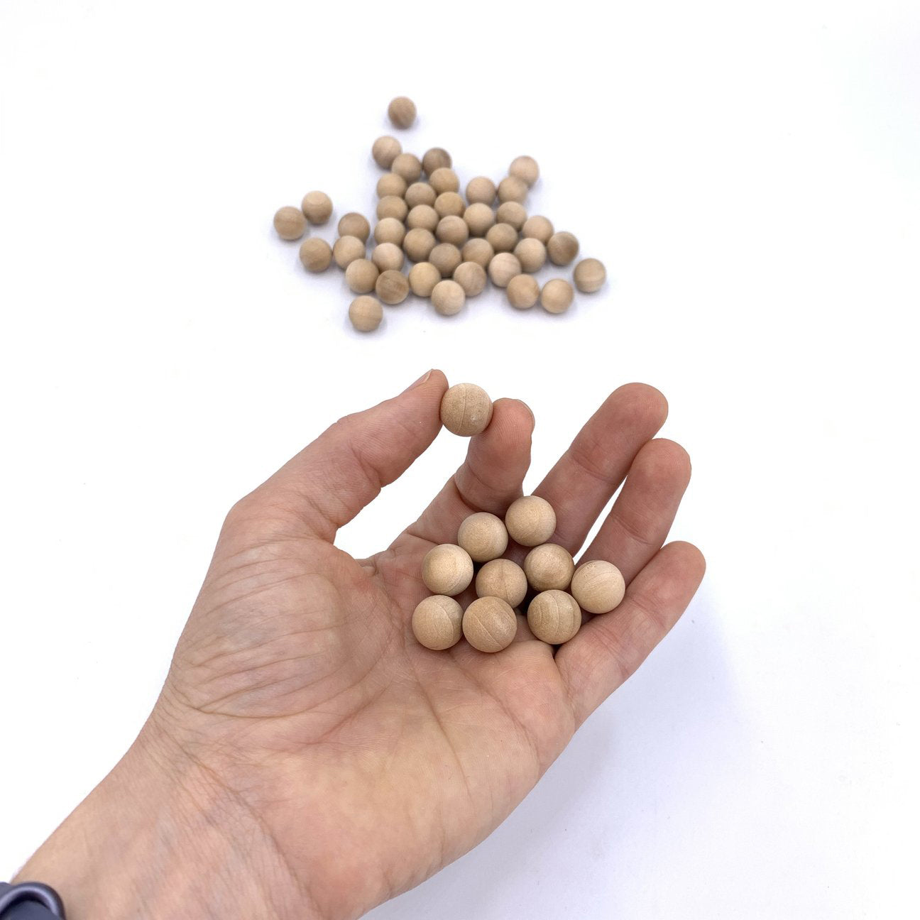 These 1/2-inch wood balls fit perfectly in the Treasures from Jennifer ten, twenty, and hundred frames as well as the counting boards for 1-10 and 11-20. They also rest neatly in the grooves of the letter and number and form drawing tracing boards.