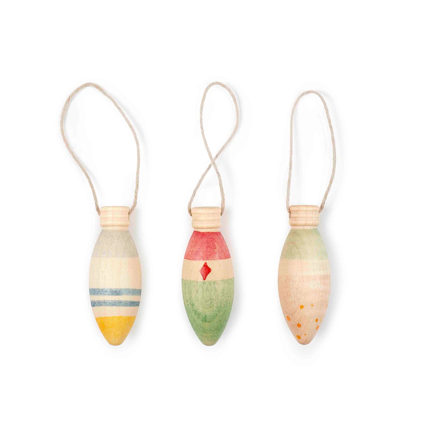 3 lamp-shaped pieces, painted by hand. Includes thread for hanging.