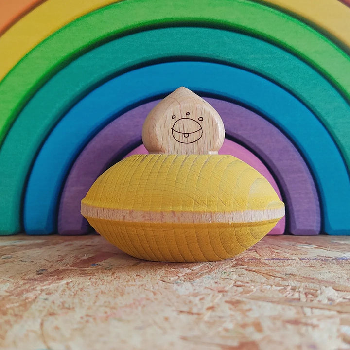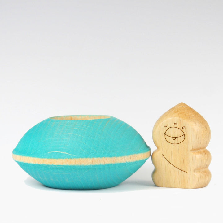 UFO and Alien made of beech wood. Diameter 8 cm.