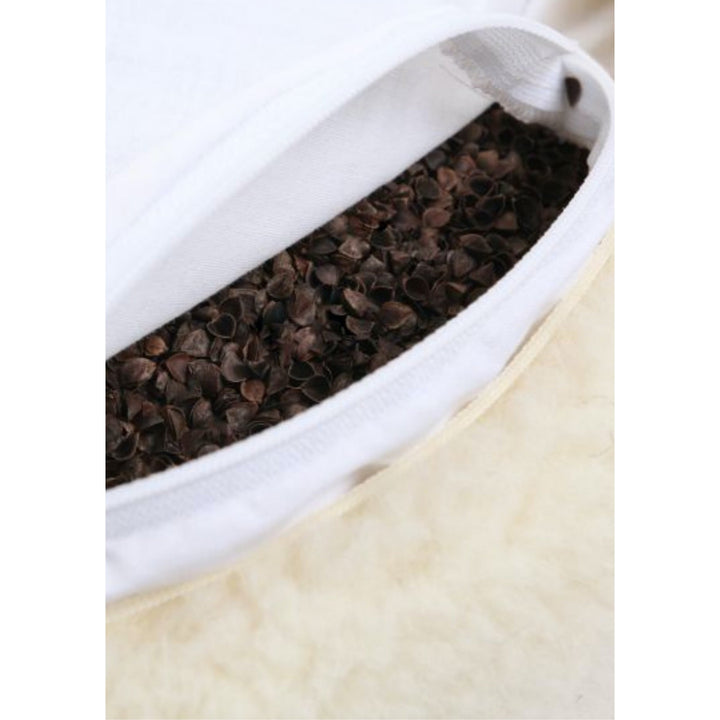 Inner bag 100% cotton. Filled with buckwheat. The product has WOOLMARK and OEKO-TEX certificates.